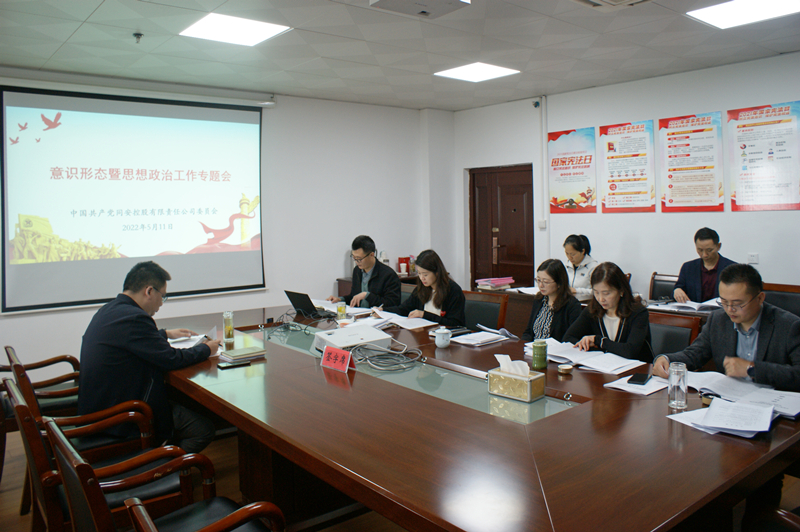 會議強調(diào),要始終堅持以習(xí)近平新時代中國特色社會主義思想為指導(dǎo),全面貫徹落實黨的十九大和十九屆歷次全會精神,以迎接、宣傳、貫徹黨的二十大為主線,及時跟進學(xué)習(xí)習(xí)近平總書記最新重要講話指示精神和黨中央、省委、市委重大決策部署精神,自覺運用黨的百年奮斗歷史經(jīng)驗,弘揚偉大建黨精神,不斷鞏固拓展黨史學(xué)習(xí)教育成果。要始終聚焦中心工作主線,全面壓緊壓實各層級主體責(zé)任,牢牢把握意識形態(tài)工作領(lǐng)導(dǎo)權(quán),緊繃思想之弦、樹牢底線思維,以極端負責(zé)的精神做好極端重要的工作,內(nèi)化于心、外化于行,奮力開創(chuàng)公司意識形態(tài)工作新局面,為扎實穩(wěn)步推進公司各項重點工作任務(wù)創(chuàng)造有力的思想保證、積極的輿論支持和穩(wěn)定的工作環(huán)境,以實際行動迎接黨的二十大勝利召開。