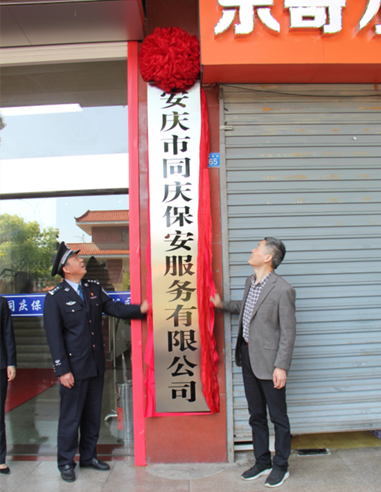 2020年4月28日上午,同安控股子公司安慶市同慶保安服務(wù)有限公司舉行揭牌儀式。同安控股黨委書記、董事長、總經(jīng)理王春出席并致辭,市屬國有企業(yè)黨委副書記、市國資辦專職副主任方少為出席并宣讀市國資辦批復(fù)文件,市公安局黨委委員王學(xué)峰出席并與王春共同揭牌。揭牌儀式由同安控股黨委副書記、常務(wù)副總經(jīng)理兼同慶保安服務(wù)公司董事長沈軍主持。同安控股領(lǐng)導(dǎo)班子成員張薦、路菁、吳其琨,市公安局、國資辦相關(guān)科室負(fù)責(zé)人以及保安公司中層以上管理人員參加儀式。
