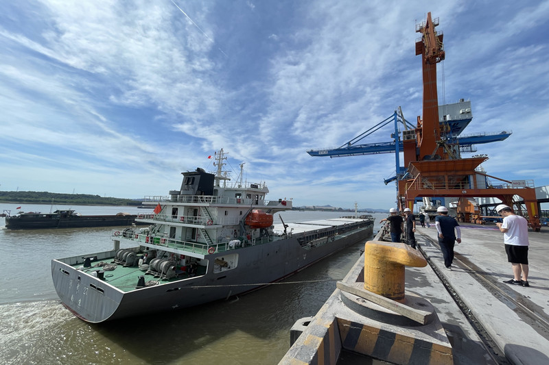 8月7日上午,滿載著俄羅斯玉米的“潤武27”號貨輪順利靠泊安慶長風(fēng)港。