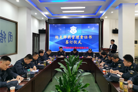 為全面落實(shí)槍彈管理安全責(zé)任,切實(shí)做好武裝守押安全管理工作,堅(jiān)決杜絕涉及槍彈安全事故的發(fā)生,4月17日,同慶保安公司舉行槍彈管理責(zé)任書簽訂儀式,市公安局保監(jiān)支隊(duì)駐公司警務(wù)代表盛斌到會指導(dǎo),公司、護(hù)衛(wèi)中心、守押大隊(duì)及中隊(duì)負(fù)責(zé)人參加。